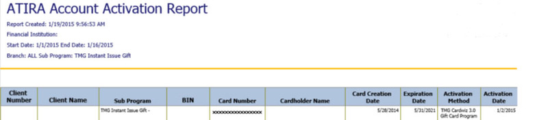 Use this daily report to monitor activations by Branch and Sub Program for ATIRA PrePaid programs.