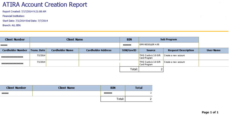 Use this daily report to monitor new account creations by Branch and Sub Program for ATIRA PrePaid programs.