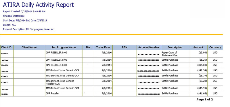 Use this report to monitor daily activity by Request Description, Branch and Subprogram Name for ATIRA PrePaid programs.