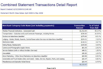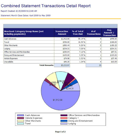 This monthly report breaks down the following for up to 10 cardholders: