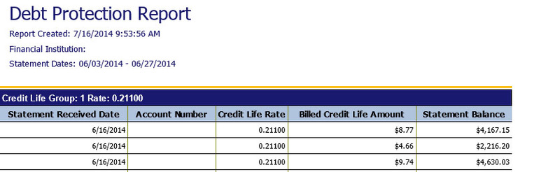 This monthly report allows the user to view cardholders debt protection rate and amount billed on their last statement.