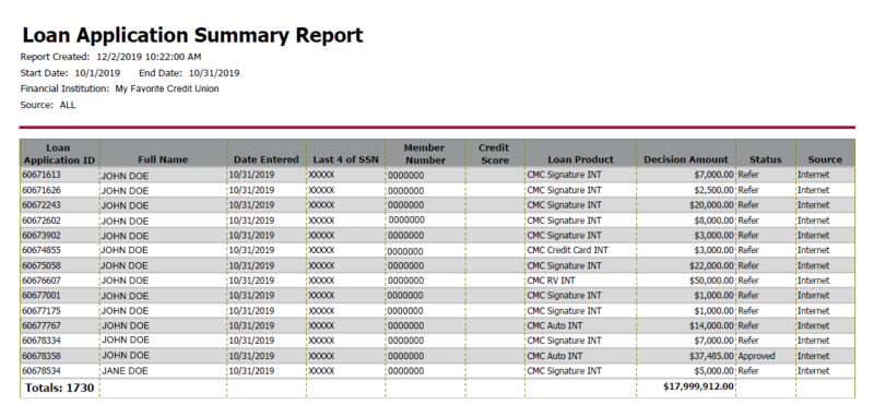 - Select Loan Application Summary Report.
