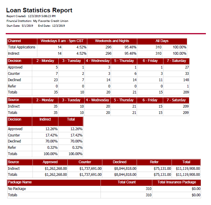 The Loan Statistics Report replaces the Month End Statistics Report in Infolink. This report provides statistics regarding loan applications handled through the Contact Center.