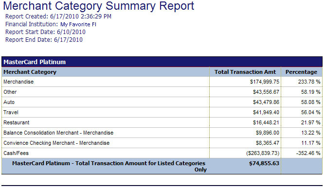 - Select Merchant Category Summary Report.