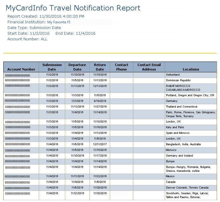 - Select MyCardInfo Travel Notification Report.