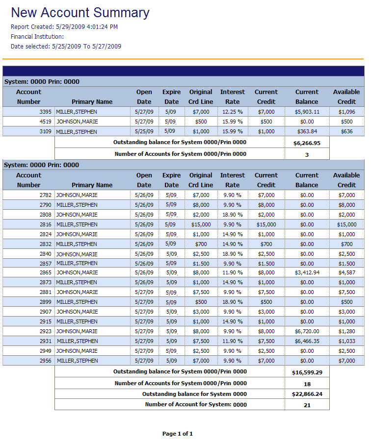 This is a daily report that displays the new accounts that have been added to the financial institution account base.