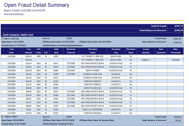 This is a daily report that displays the fraud tickets that have been opened for the financial institution. This report is available if we work your fraud cases.