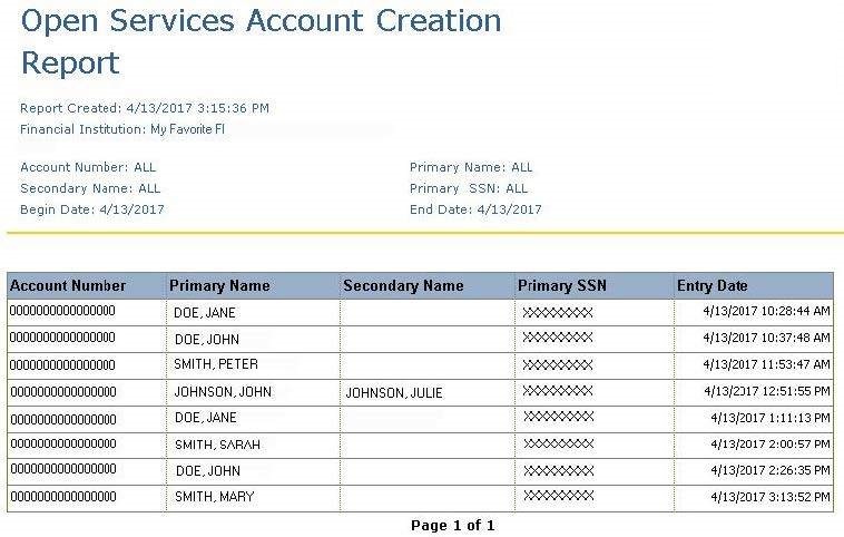 Use this report to view accounts created through Open Services.