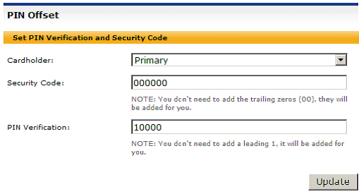 Loading the PIN offset will place the cardholder selected PIN on the magnetic strip at the time of reorder and/or reissue.