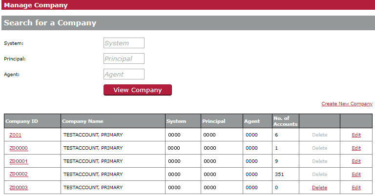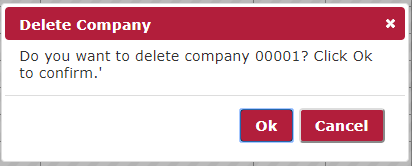 - After selecting Delete, a warning message is displayed to confirm deletion of selected company. Select Ok.