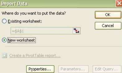 - Select either Existing Worksheet or New Worksheet, then select OK.